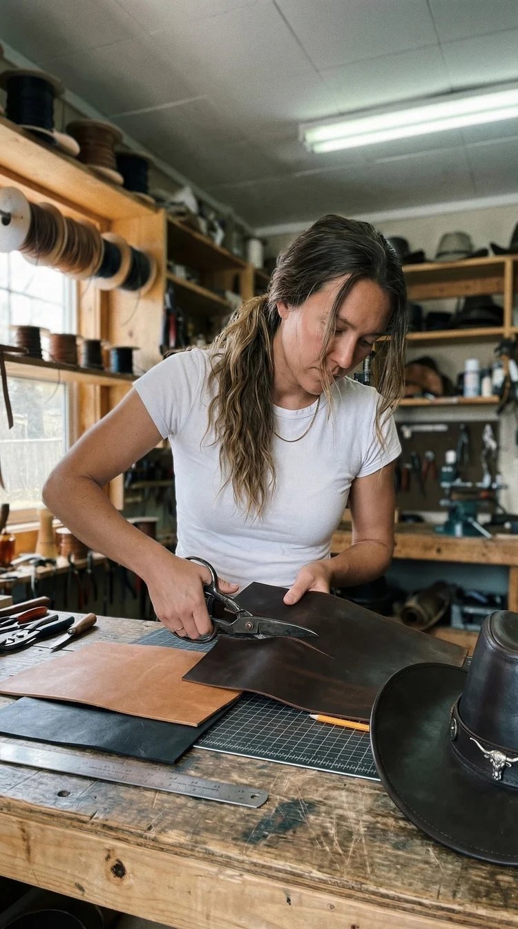 There’s no factory or assembly line here. Daisy hand-picks every hide, cuts every panel with a blade, and shapes every brim herself. When you wear this hat, you’re wearing hours of dedicated work.🛠️✨